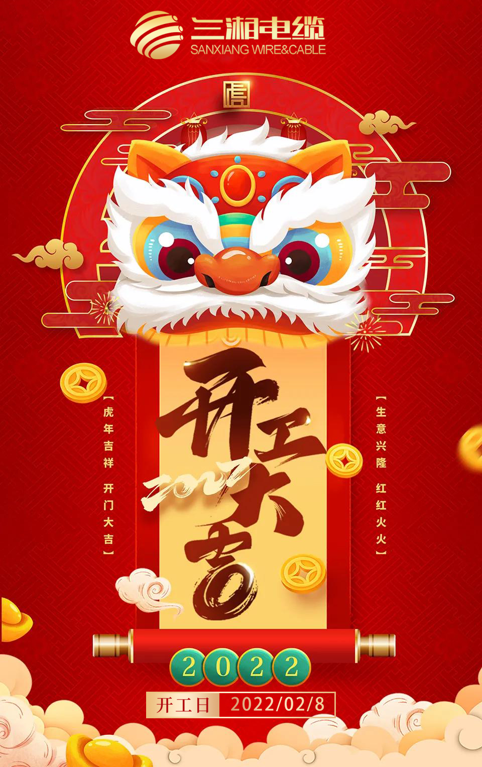 春節(jié)休假后,我公司全體員工將于2022年2月8日(農(nóng)歷正月初八)起正式營業(yè)上班,全體員工將以全新的工作面貌和飽滿的熱情投入到新一年的工作當(dāng)中去,以更優(yōu)質(zhì)的服務(wù)回饋新老客戶! 在此祝大家前程似錦,祝公司蒸蒸日上?。?/span>